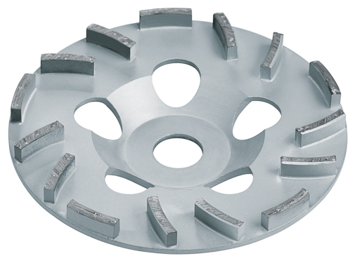 Schleifteller geeignet zum Abschleifen von Betonteilen, Anschleifen von verwittertem Altbeton, hartem Zementputz, zum Entfernen
